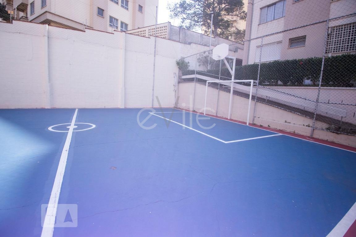 Condomínio possui apenas uma quadra poliesportiva e cada apartamento uma vaga demarcada, porém descoberta.