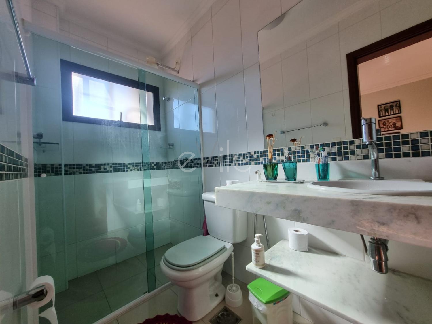 Lavanderia com banheiro de serviços.