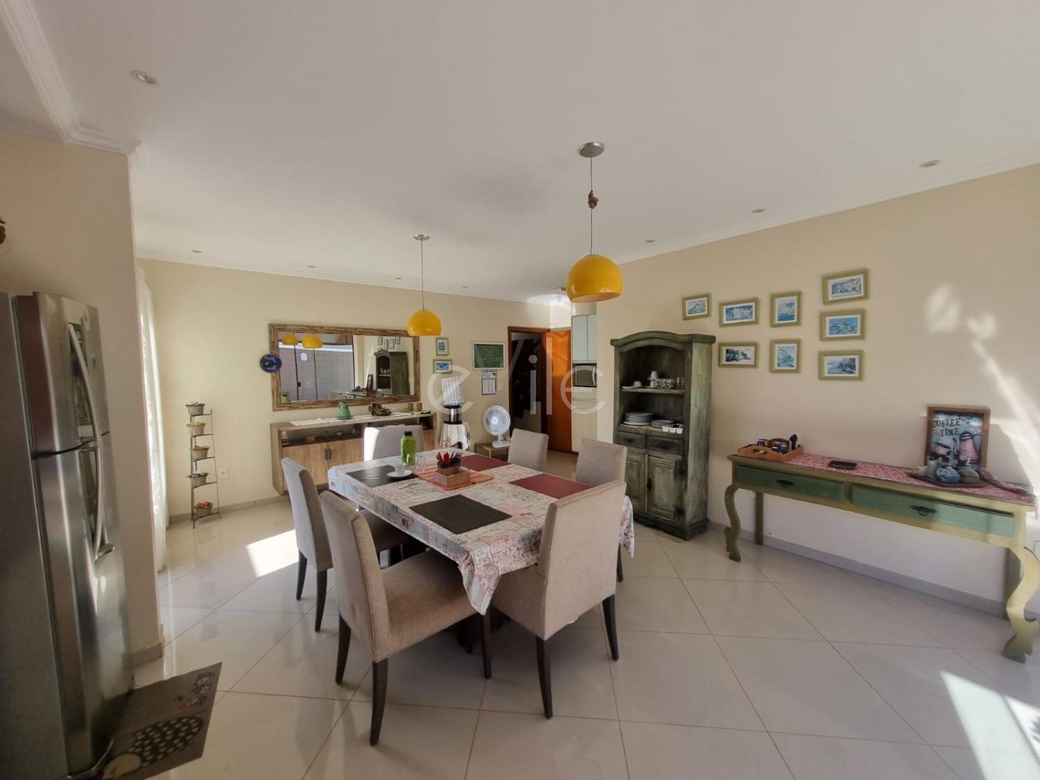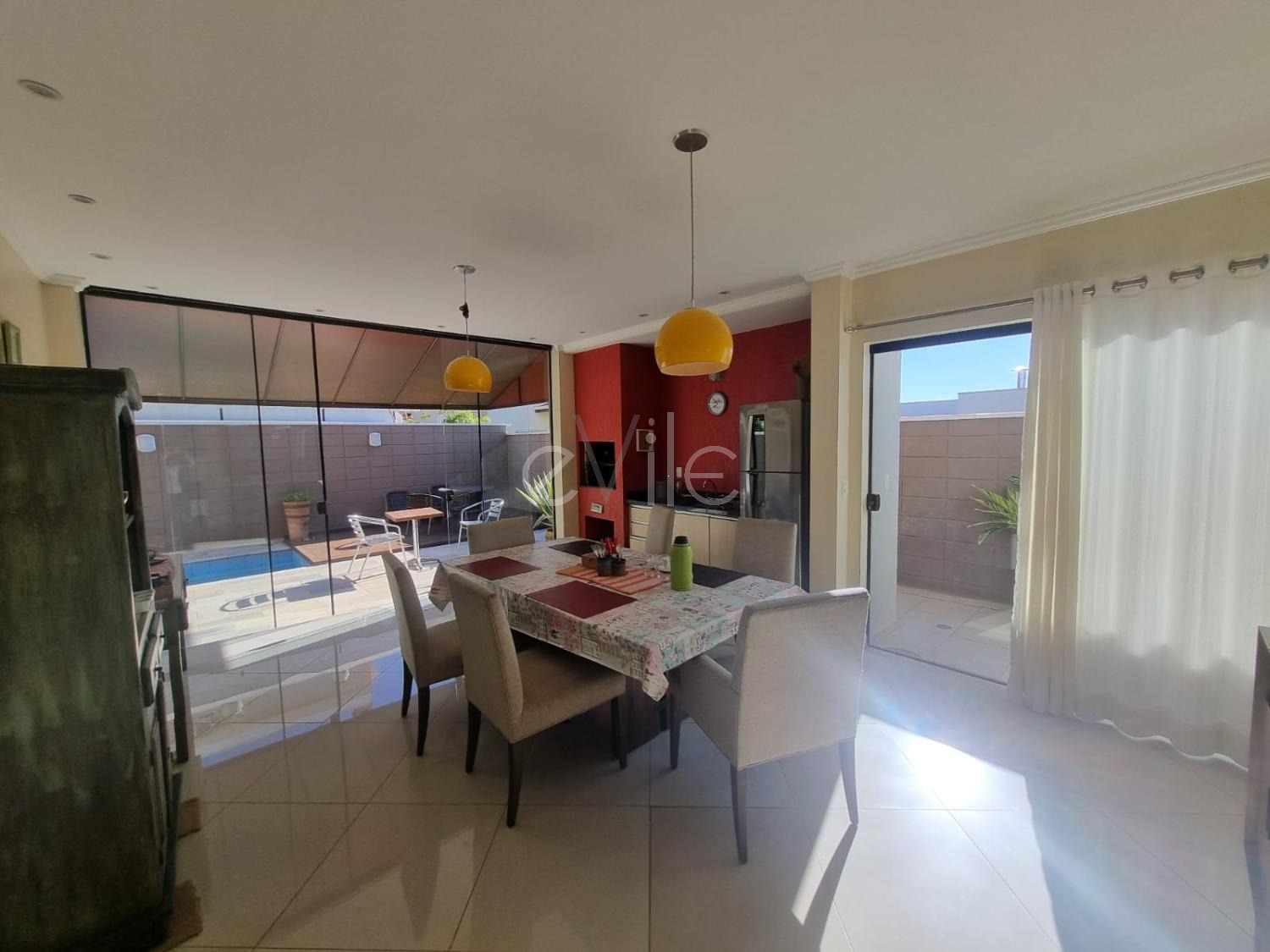 Piso térreo: 1 suíte que pode ser transformado em escritório, lavabo, sala de estar, sala de TV e sala de jantar com acesso área gourmet. Cozinha com armários planejados.