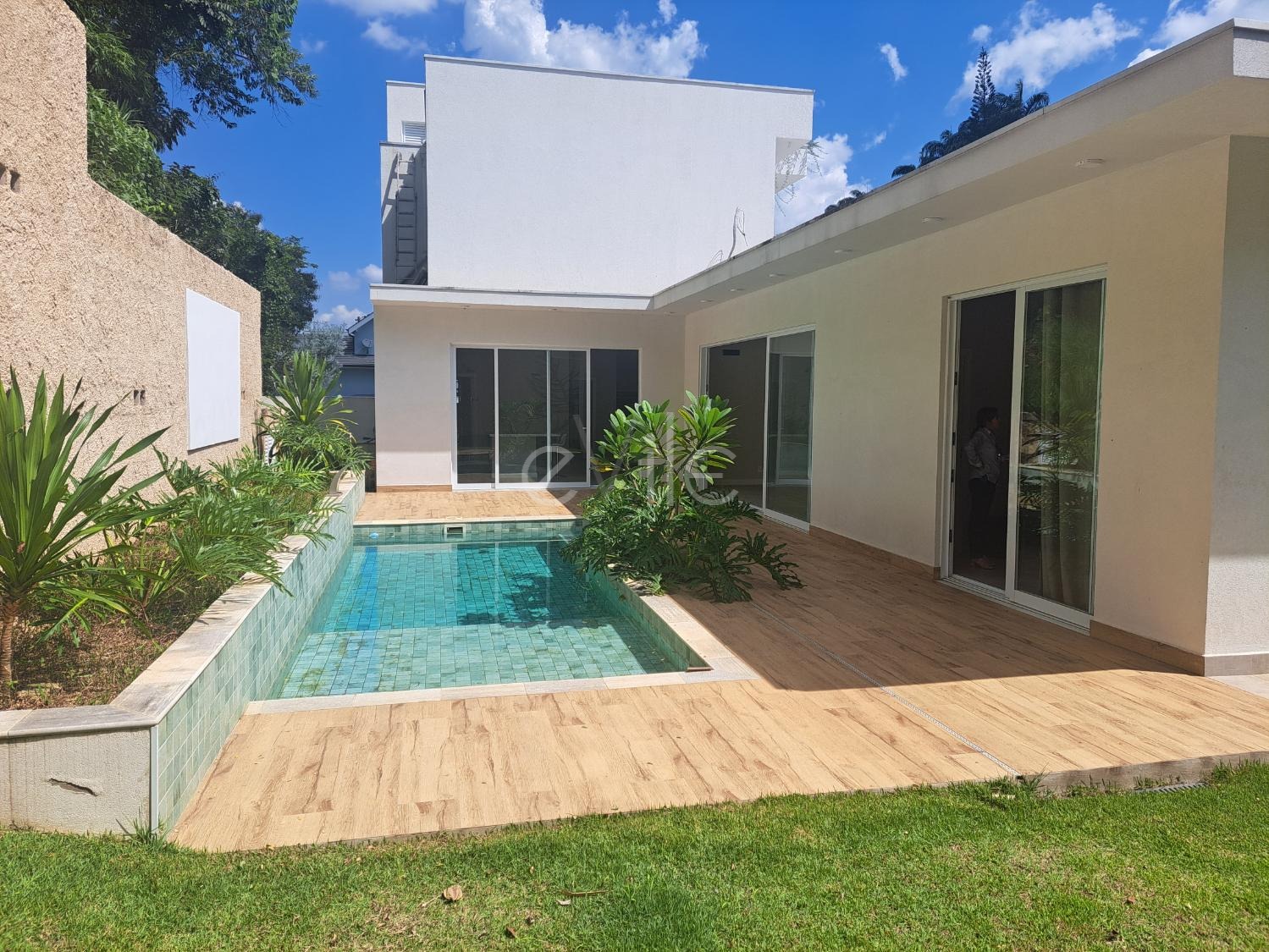 São 04 suítes sendo 01 master com ampla varanda e 01 suíte no piso inferior da casa com vista para piscina; escritório, lavabo;
